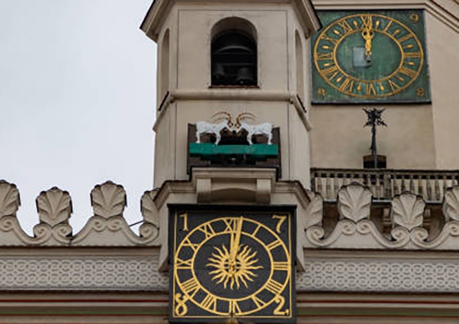 The goats escaped from Pietrek and ran up the tower steps, where they began butting heads. The sight so amused and entertained the crowd that the mayor forgave the lad and commissioned a mechanical clock with the two goats.