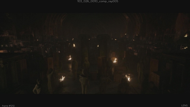 The work done on environments by one of our trusted vendors up in Canada also stands out. All kinds of wonderful environments – from Medusa's Cavern, which they did as a content for the volume, to all the great work for the Underworld. We had this great concept that the Underworld was going to be a massive cave on an almost planetary scale. And if you look at that, you're going to see that it's not sky. There are actual mountains up there and they have an alluvial flow. You get these lovely, almost spider-like outcroppings from each of the mountains that's buried in the mists.