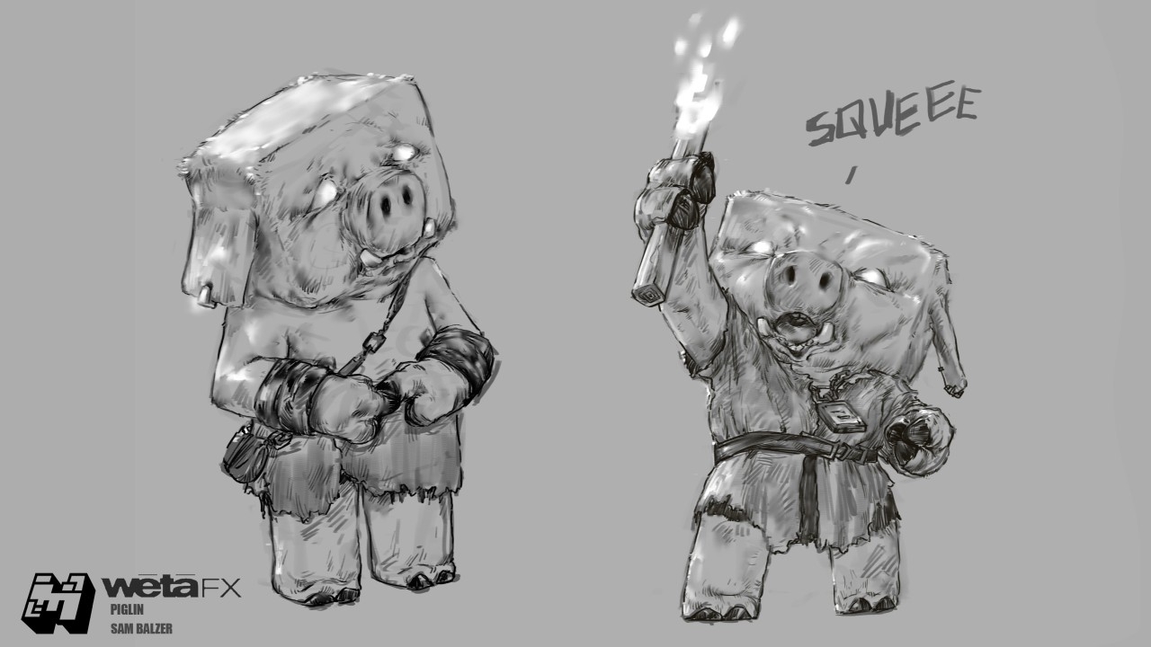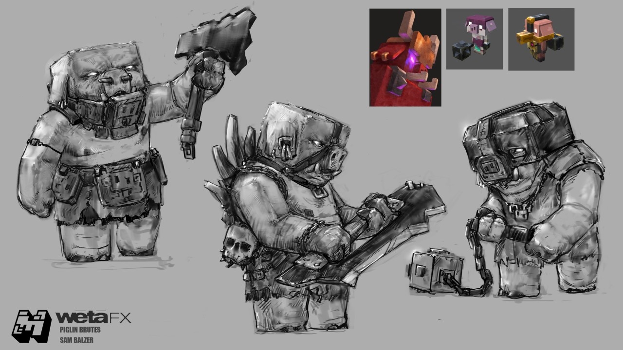 Even though she’s a blocky character, her anatomy is very much a biped, with rounder limbs than the other Piglins. She's got hooves, is somewhat squarish, and her much more bulky mass in the middle was easier to manipulate and move around. Because she would have to battle with Steve in the end, she had to have a level of agility that even some of the Piglins didn't have.