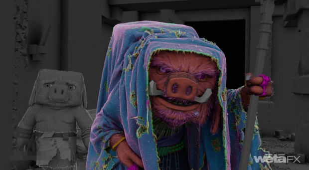 KE: Alan Henry is the motion performer who portrayed her on set and on the mocap stage. I've known him for close to 15 years. I started working with him on The Hobbit films. He was a stunt performer who eventually rolled into doing motion capture with us on The Hobbit. He’s an incredible actor and absolutely hilarious and can adapt to any sort of situation. He’s so improvisational. He came up with an approach to Malgosha very quickly. Added a limp so that she felt decrepit, leaning on the staff, adding her other arm as kind of like a gimp arm that she would point and gesture with.