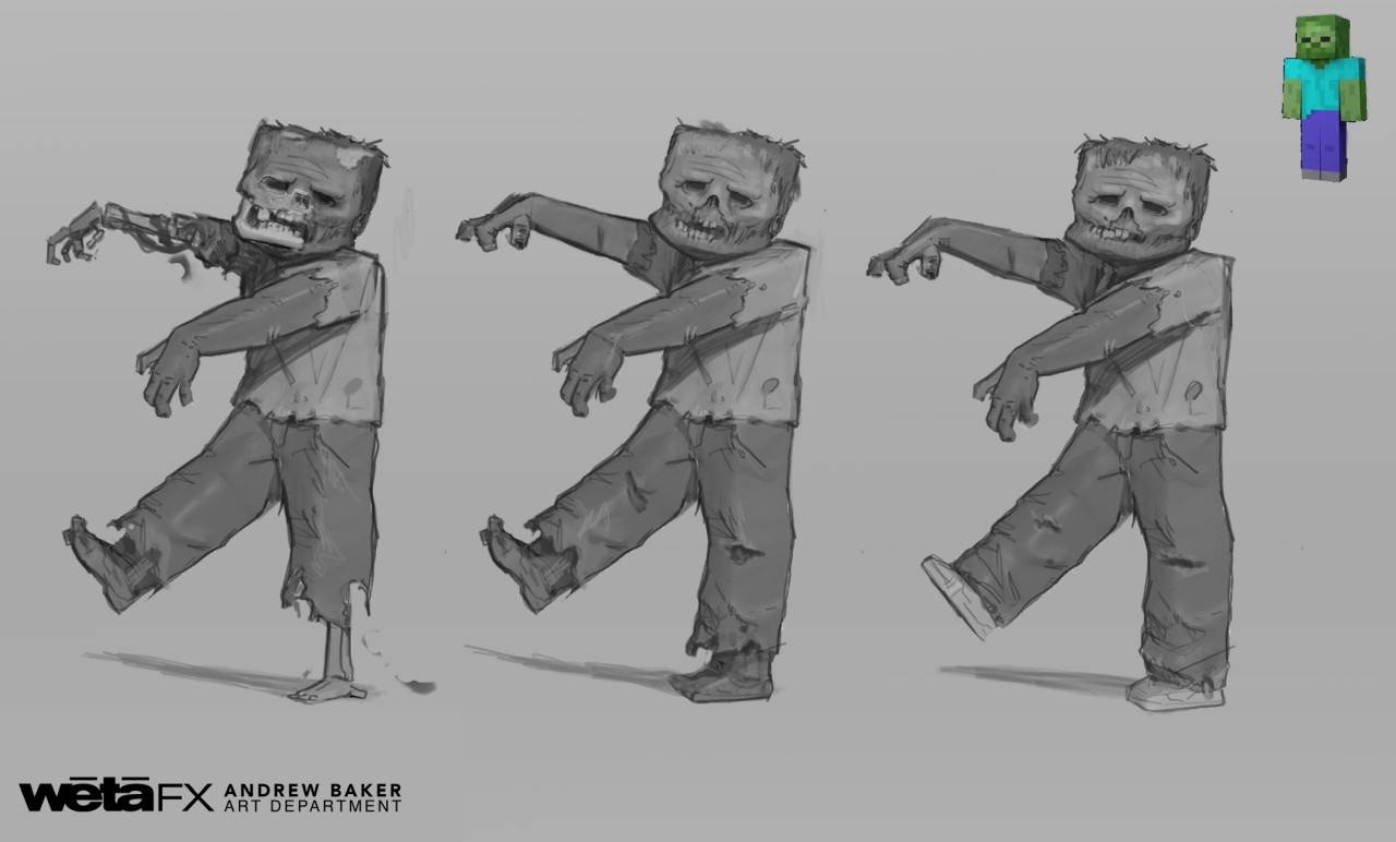 After a lot of experimentation, we came up with basic personality types for each character. There were 12 different types of Piglins. The zombies were essentially like you're coming home from the pub after a few too many pints and you're just trying to get in the door, but you can't find your keys. Loose, slightly inebriated movement. The best movement we found for the skeletons was essentially like an old man with rigid limbs and lack of ligaments that was chasing kids off his lawn. And so, we created this kind of bible of performance types that really helped guide performers on the mocap stage and animators later on.