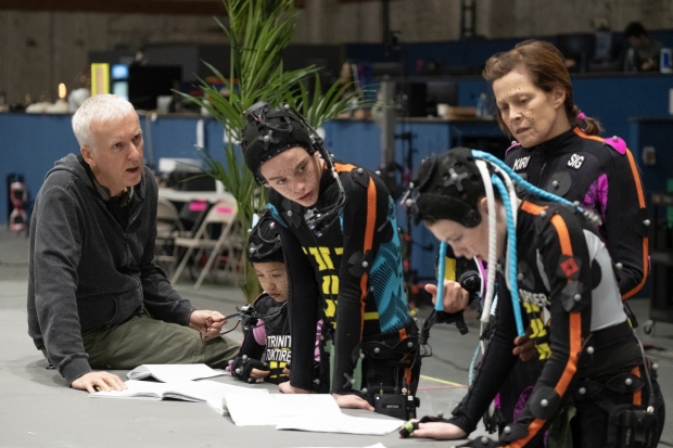 So, in discussing his latest film and the huge amount of work that went into its production, Cameron begins by noting that routine craziness is baked into his process. “Life is always crazy for me!” he laughs. “It doesn’t matter. When I’m not making a movie, I’m doing something else like exploring the deep ocean. So, I try to keep a level of craziness to a maximum all of the time.” Despite the constant pressure, his hair remains intact. “I was gifted genetically with strong hair that hasn’t come out yet.” He does nothing half-heartedly. He spent 6-7 months making notes for the Avatar sequels. “I write from two directions at once,” he explains. “I write backwards from a list of things that I actually want to see on the screen, and I write forwards for character and logic meaning. Jake Sully and Neytiri are a mated pair at the end of Avatar. Now let’s cut to 15 years later. They’ve got kids. I’m a family guy. I’ve got five kids, so I thought I’m going to write a family story. I’m going to write what it means when the two fearless courageous warriors are defending their planet from invasion have children. What does that do to their thought process, judgements, relationships with each other, and attack strategy? Jake literally leaped off of one creature onto another one that was fierce and ferocious in order to get what he wanted… which was the girl. And by the way, in the process led a revolution. Who is that guy now years later? How has his identity shifted? How has Neytiri’s identify shifted?”