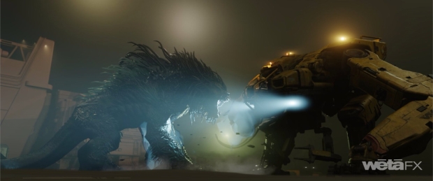 Previs was essential in mapping out the third act finale. “We flew up to Auckland and Dan had his pitch for Dek versus the power loader and the power loader versus the Kalisk,” recalls Rapley. “It would be a short, punchy sequence. We were referencing Jurassic Park and The Last of the Mohicans among other things. We batted ideas backwards and forwards. I came back to Wellington and with a small team we knocked out the sequence. It was difficult with the Kalisk and the power loader because they had abilities that we didn't fully understand at that time. The Kalisk can regenerate and there was a time when it had armor plating that would shoot out as well. Another time during the design, its arms would open up. The Kalisk was still being ironed out so we didn’t want to use all of these things in this fight. You've got a regeneration ability that seems very overpowered. How does a power loader fight that? Our answer was to stick a big saw blade through it and overpower the healing. Then the cryo-grenade comes into it again later. We developed that sequence then talked to Dan about it. He'd have ideas and we would iterate on them. Within five weeks we're shooting it in the middle of the night up on a farm just out of Auckland. It was a crazy time but super gratifying for me to see those previs shots being filmed, turned back to us as plates that we would add to and then do the final animation. Sheldon made it look beautiful. I am very proud of it.”